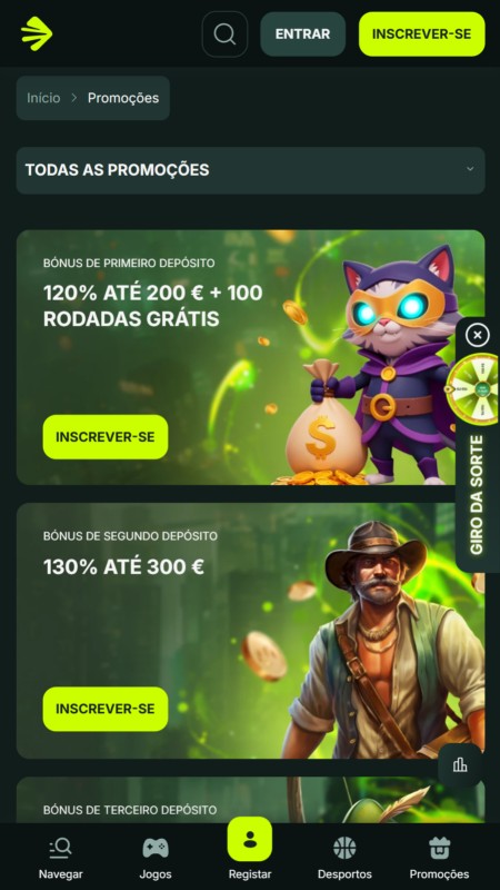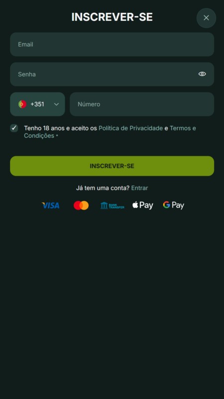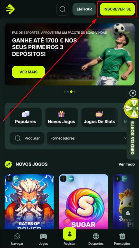 Abra o site da BetNjet no seu computador, tablet ou telemóvel. Clique no botão “Inscrever-se”, geralmente destacado em verde, no canto superior direito do ecrã.