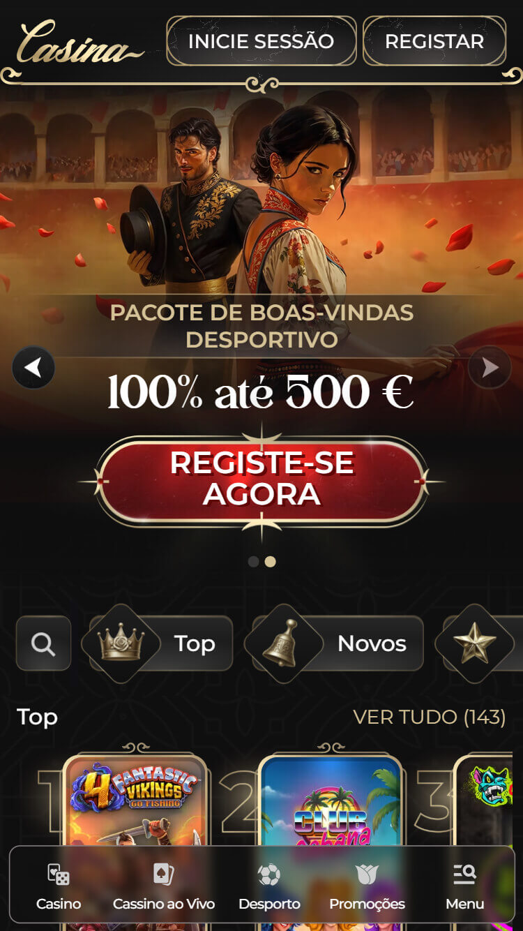 A casa de apostas Casina oferece um pacote de Boas‑vindas em desporto que corresponde a 100% do primeiro depósito efetuado, até 500 €. Para se tornar elegível, registe uma conta ativa no site e efetue o seu primeiro depósito de pelo menos 20 €. Antes de apostar com o saldo do bónus, confirme sempre os requisitos de rollover, as odds mínimas aplicáveis e o depósito mínimo exigido (ver T&C para valores concretos).