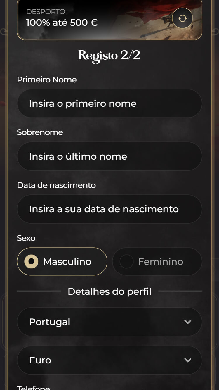 | 💸 Reembolso Desportivo | 15% até 500 € |