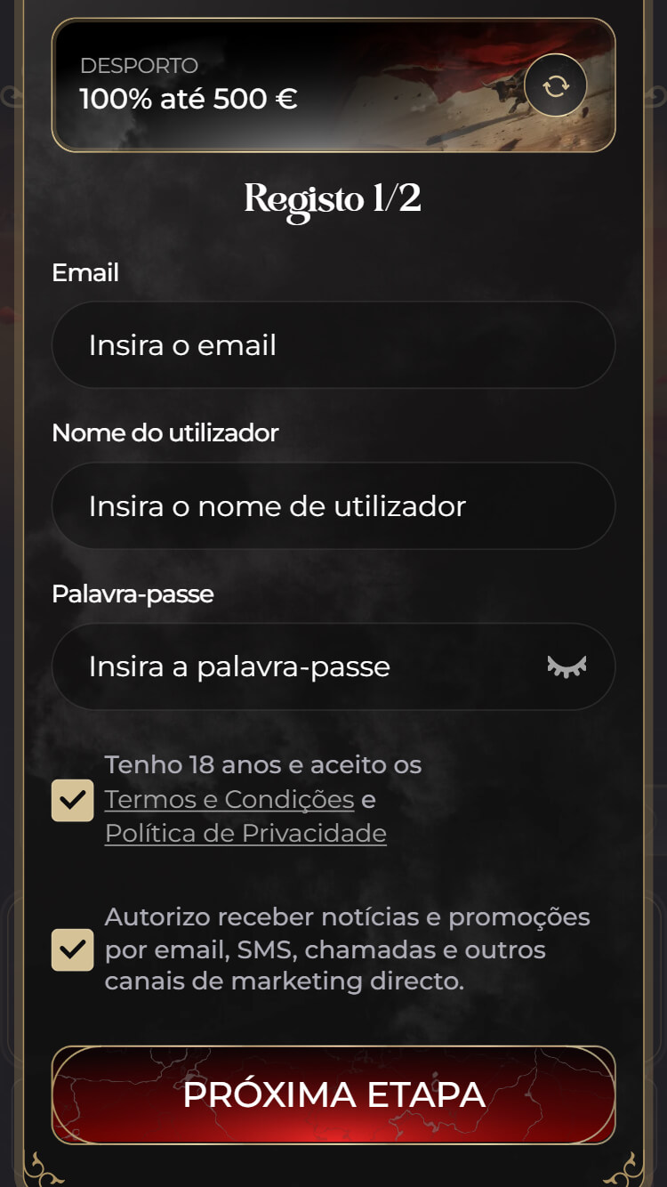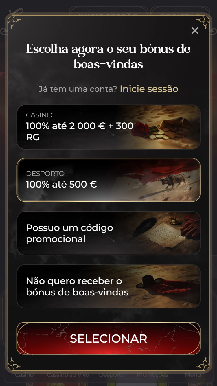 | 🎁 Bónus de Boas-vindas em Desporto | 100% até 500 € |