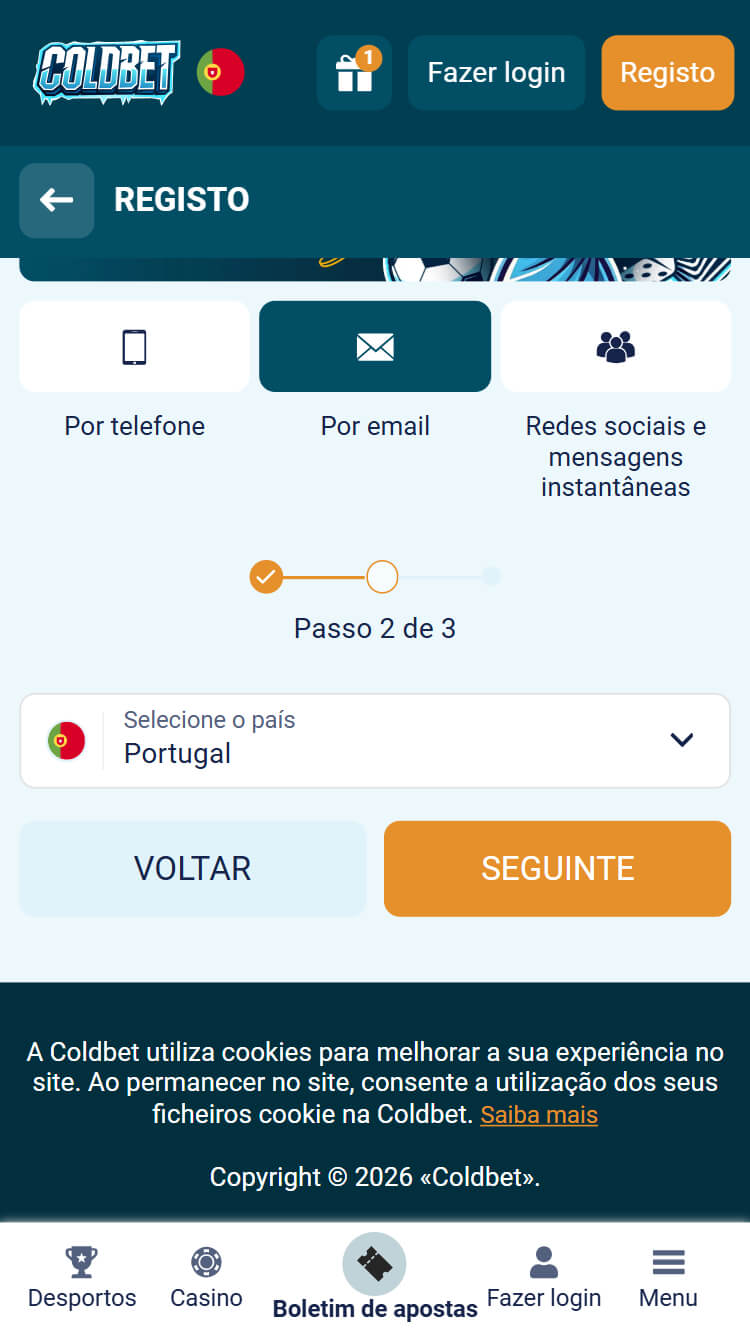 É obrigatório estar registado para poder apostar em qualquer desporto ou para jogar a dinheiro real em qualquer jogo da Coldbet. Felizmente, esta casa mantém as coisas bastantes simples e o registo é só mais uma delas.