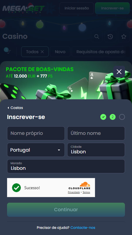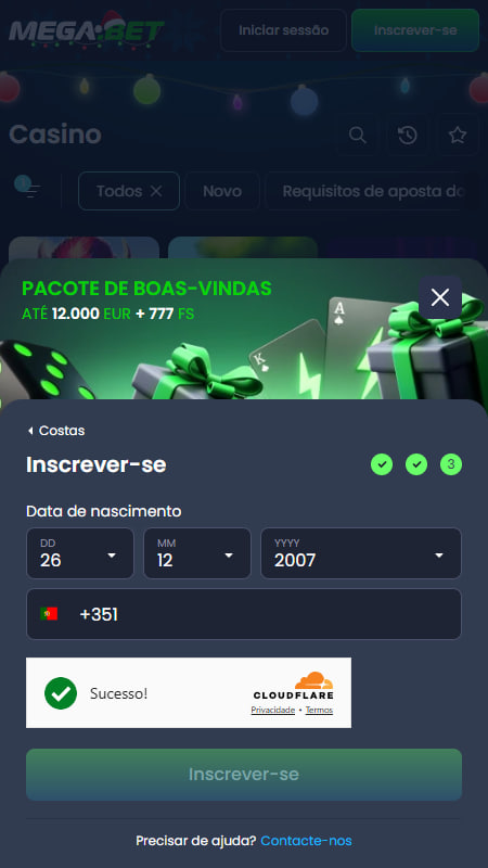 A plataforma Megabet Bookmaker oferece a possibilidade de ganhar até 12.000 € com o Pacote de Bónus de Boas-Vindas de 500% e 777 Rodadas Grátis nos primeiros seis depósitos para novos utilizadores. Para isso acontecer, terá que se registar na plataforma e depositar pelo menos 30 €, mas nada melhor do que ler os Termos e Condições.