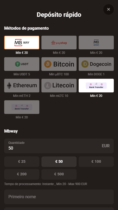 Podes selecionar o bónus de boas-vindas;