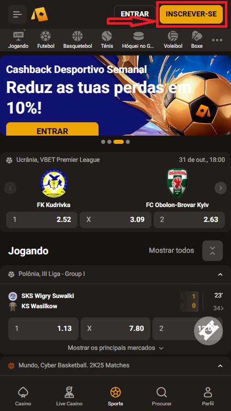 No canto superior direito, clica no botão “Increver-se”;