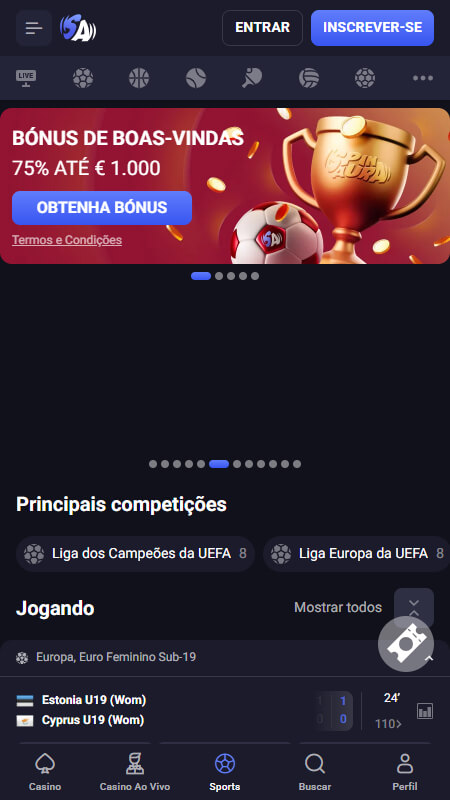 | 🎁 Bónus de Boas-Vindas em Desporto | 75% até 1.000 € |