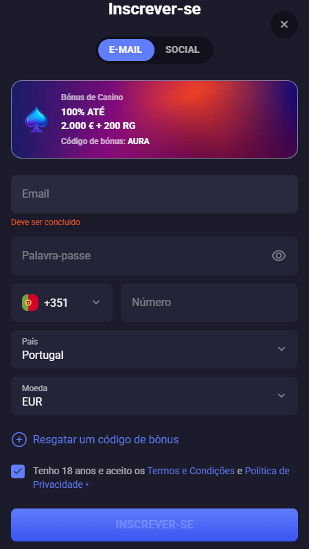 É obrigatório estar registado para o apostador conseguir apostar em qualquer desporto ou para jogar a dinheiro real qualquer jogo da SpinAura Bookmaker. Por sorte, este casino mantém as coisas bem simples, e o registo é só mais uma delas.