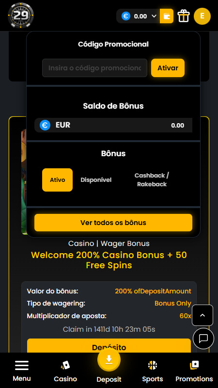 Aqui estão alguns bónus que poderá beneficiar no 29black Casino: