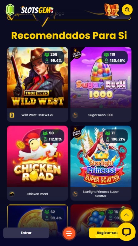 Quem quiser e desejar aceder ao Slotsgem no seu dispositivo móvel, pode fazê-lo ao aceder à versão móvel do site, através do browser! Esta versão está totalmente otimizada e o ecrã ajusta-se de forma automática a qualquer aparelho.