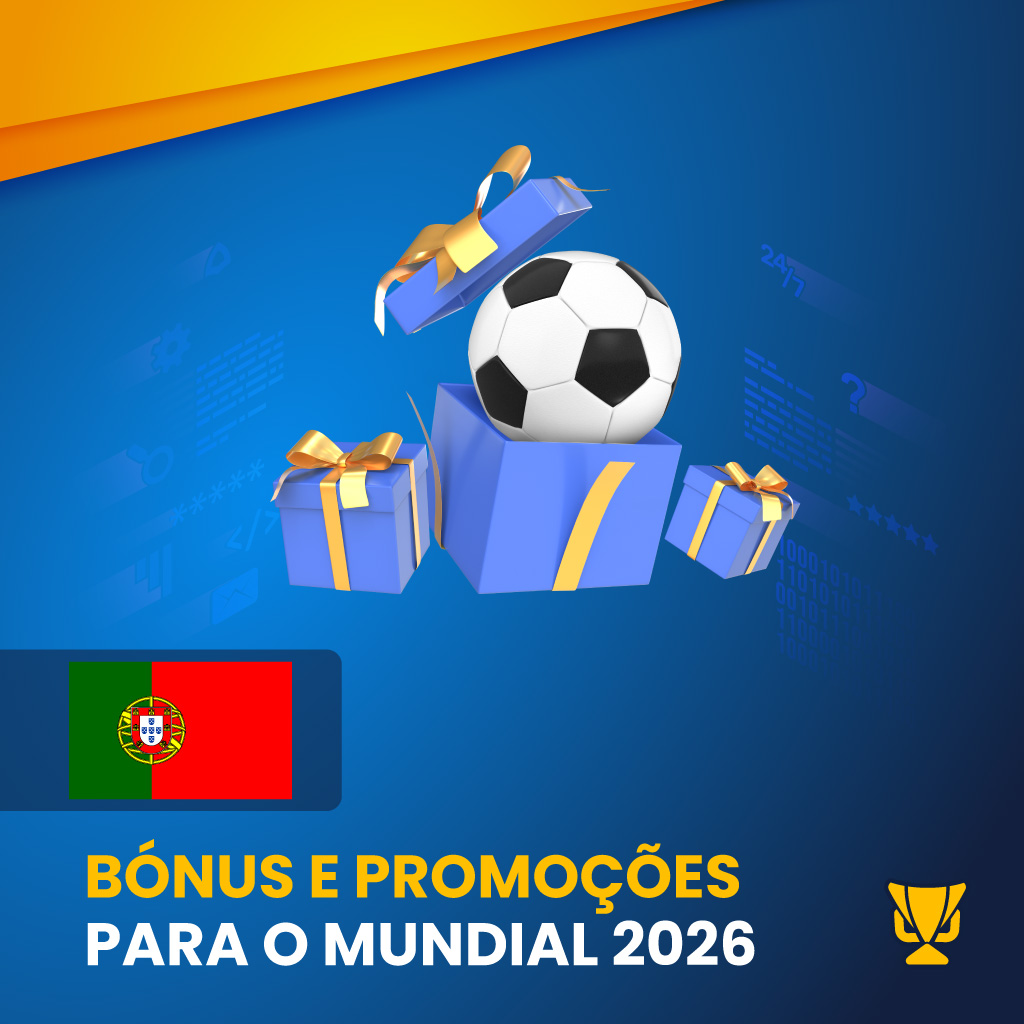 Como já é habitual, as casas de apostas irão realizar promoções especiais para o Campeonato Mundial de Futebol FIFA 2026. Antes e durante o torneio vais encontrar facilmente bónus e promoções exclusivamente criadas para maximizar os teus ganhos e prolongar a diversão ao apostar no Mundial. A seguir, vamos ver alguns bónus disponíveis, mas lembra-te que temos uma página só para os Bónus do Mundial 2026.