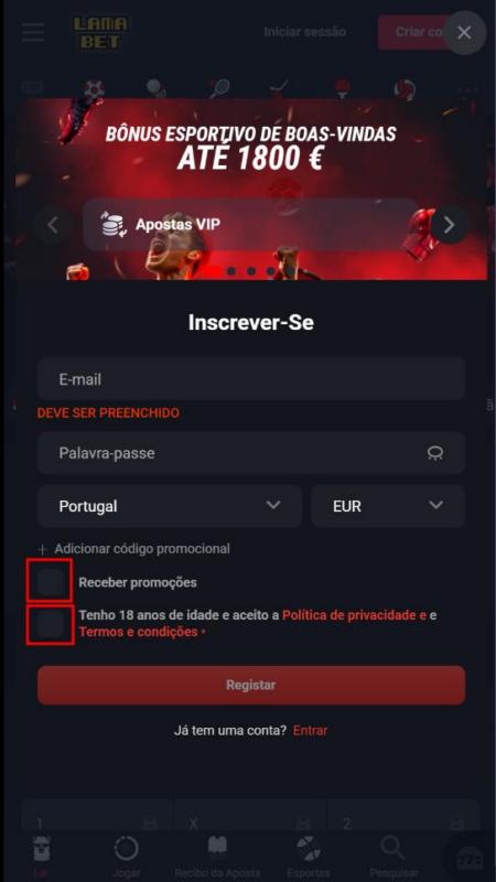 Acede ao email para verificares a tua conta. Principalmente confirmares que tens 18 ou mais anos