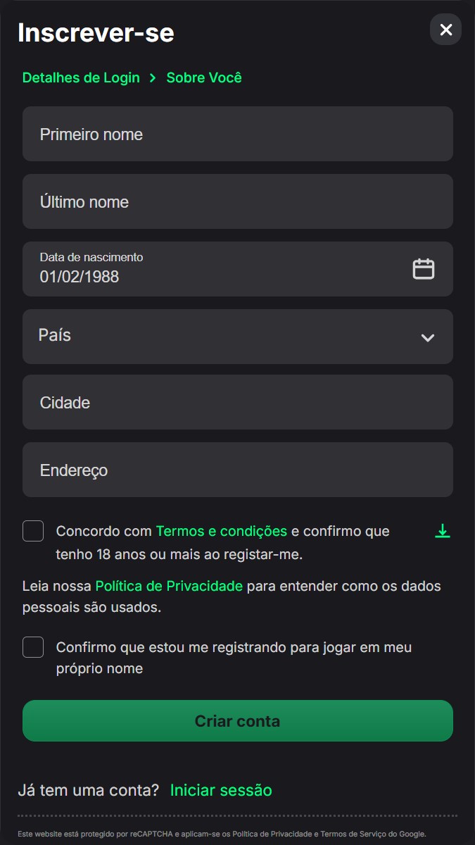 Em seguida, forneça algumas outras informações como nome, sobrenome, data de nascimento, país, cidade e endereço para criar sua conta;