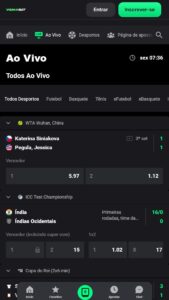 A plataforma online da Vemabet também conta com opções de apostas ao vivo. Clicando na aba “Ao Vivo”, no menu superior da página inicial do site, você encontra todos os eventos esportivos em andamento.
