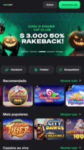 Para baixar o app Vemabet, basta acessar o site e clicar no ícone de celular no canto direito superior da tela inicial (“Aplicação móvel”). Uma nova página vai abrir e você poderá instalar o aplicativo de forma gratuita em seu celular ou computador.